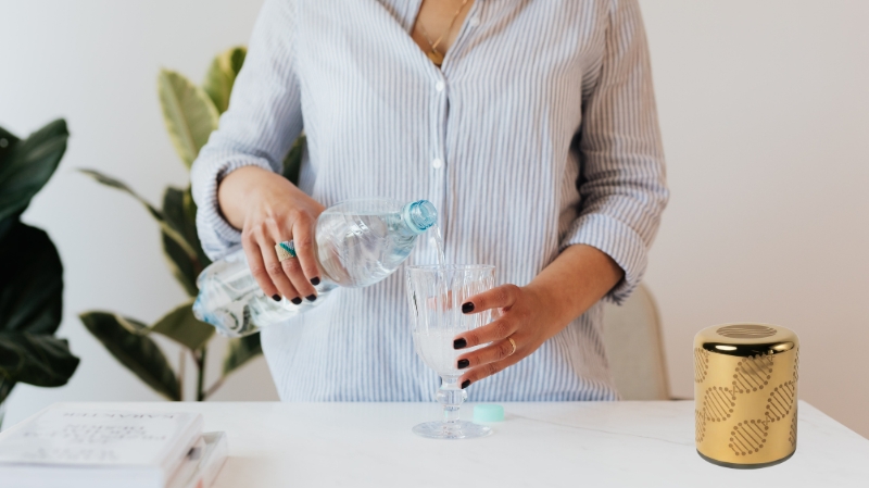 上質なエネルギー水をご自宅で: 空間のケアだけでなく、水の構造化機能も独立して備わっています。本体のそばに水を置くだけで、わずか20分で水の構造を最適化し、体になじみやすい上質なエネルギー水を作り出します。